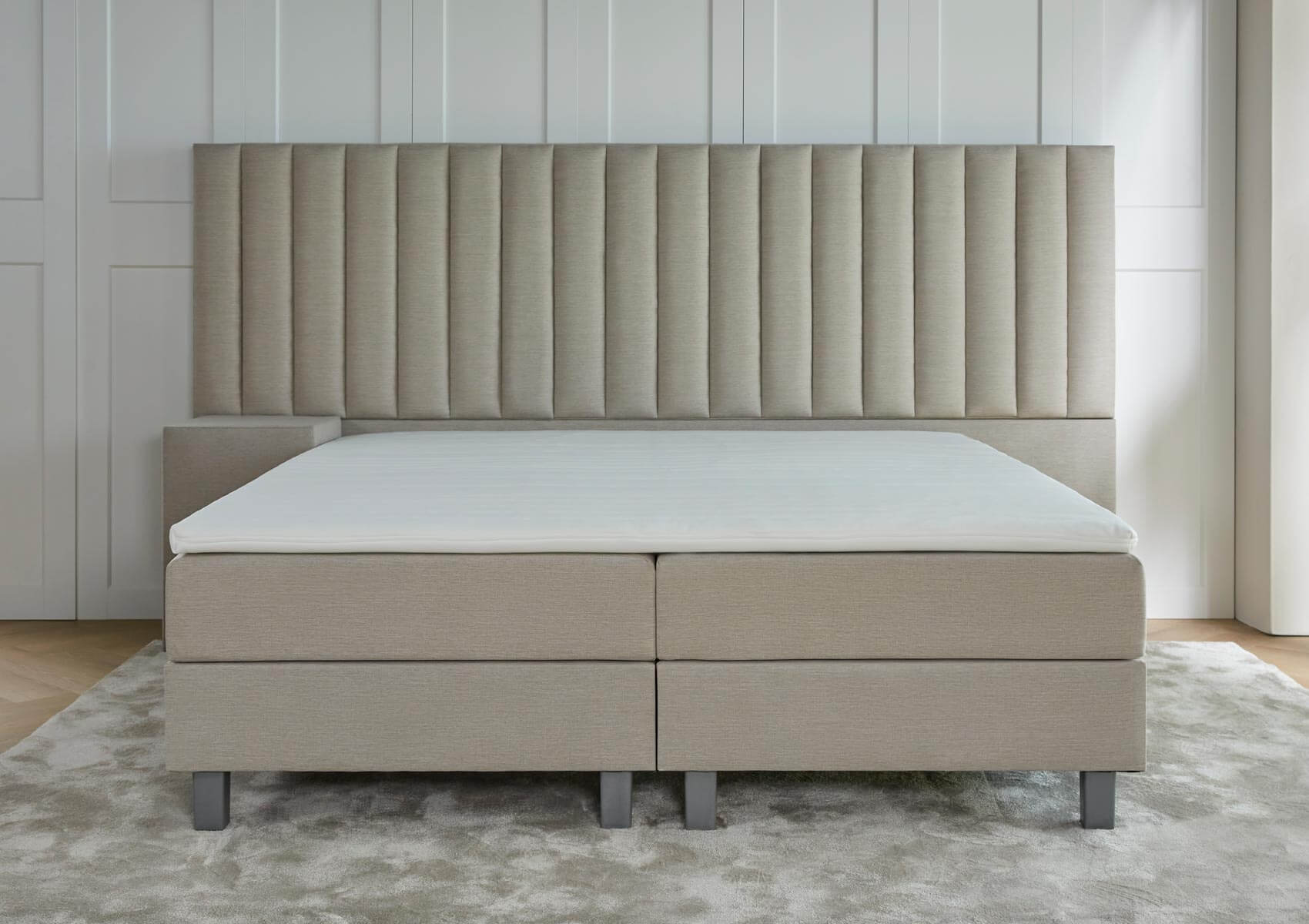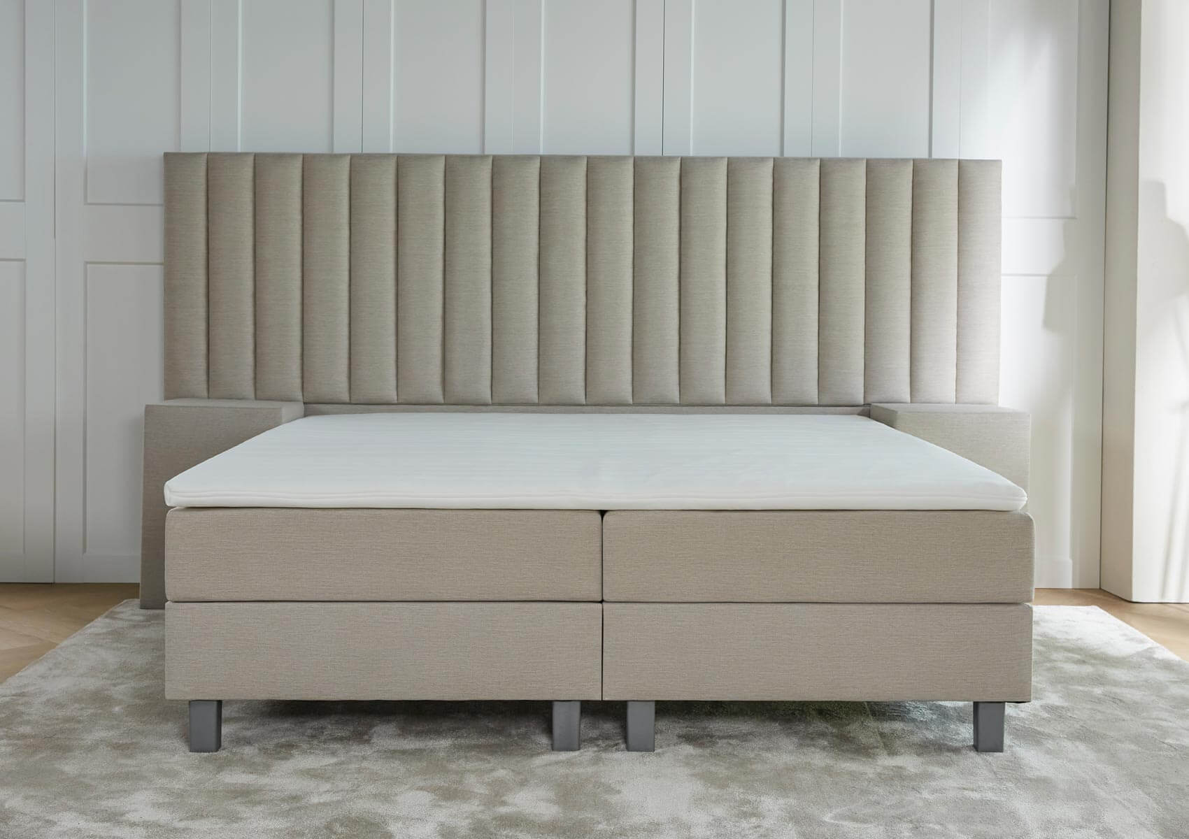 Op de matrassen ligt de topper, ook wel top(dek)matras genoemd. Dit is nog eens een extra matras, voor het optimale comfort. En daarmee is de spleet tussen de matrassen ook meteen afgedekt. Word elke dag uitgerust wakker!