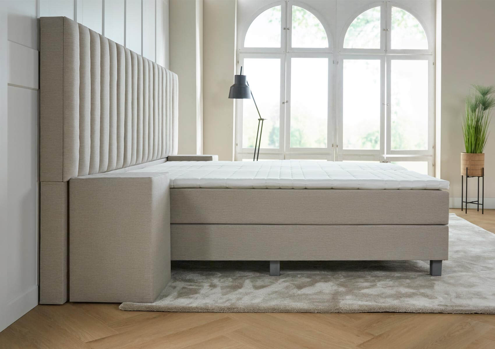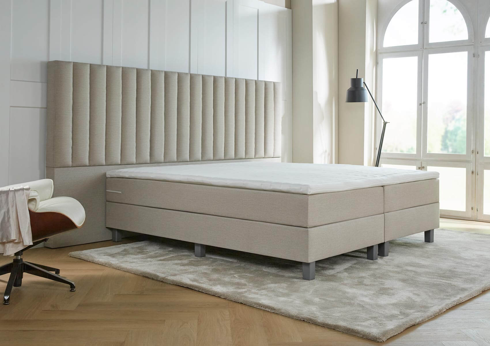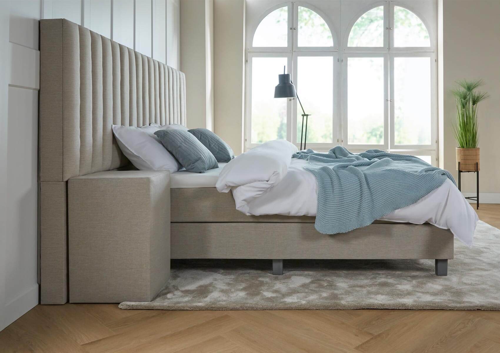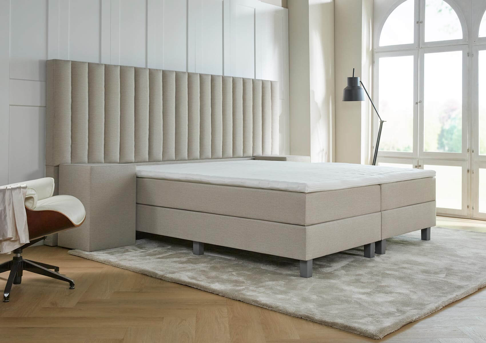 Het bed is zeer luxe, met het fraaie XXL hoofdbord! Haal het comfort van een luxe hotel in huis en word elke dag navenant wakker!