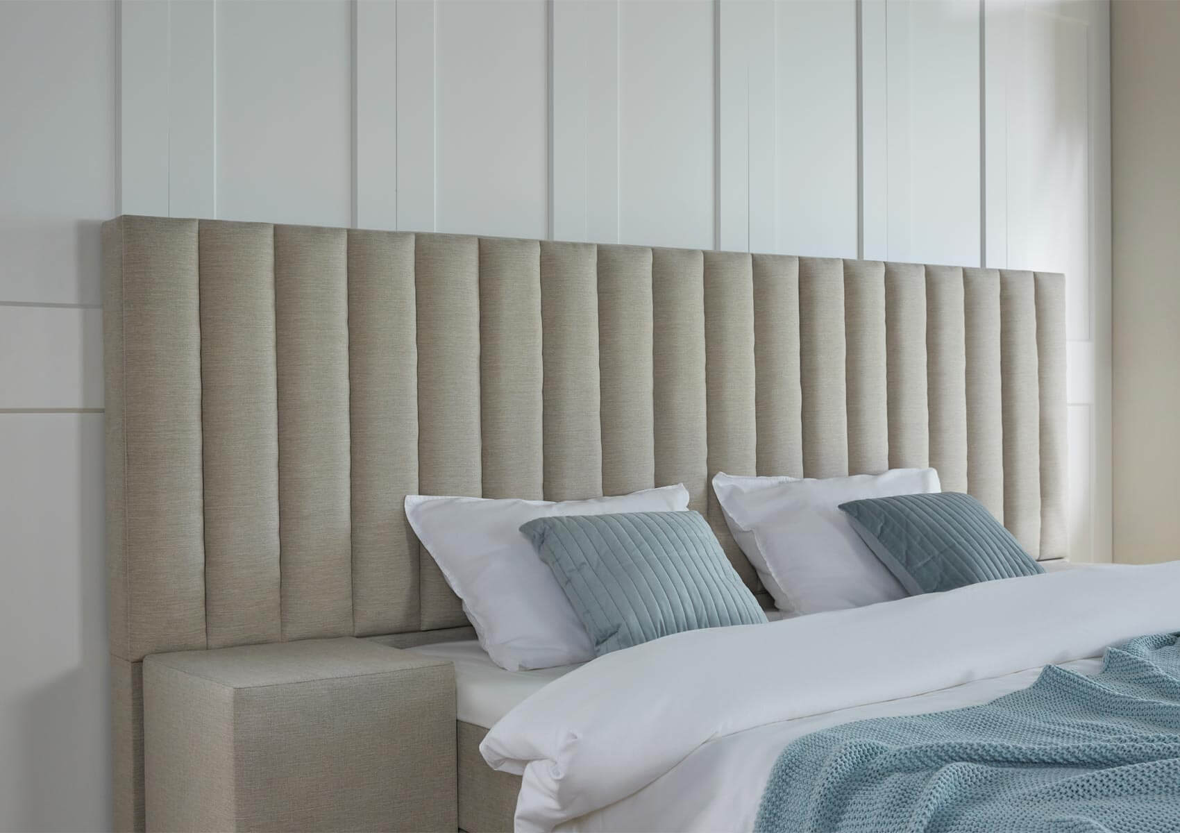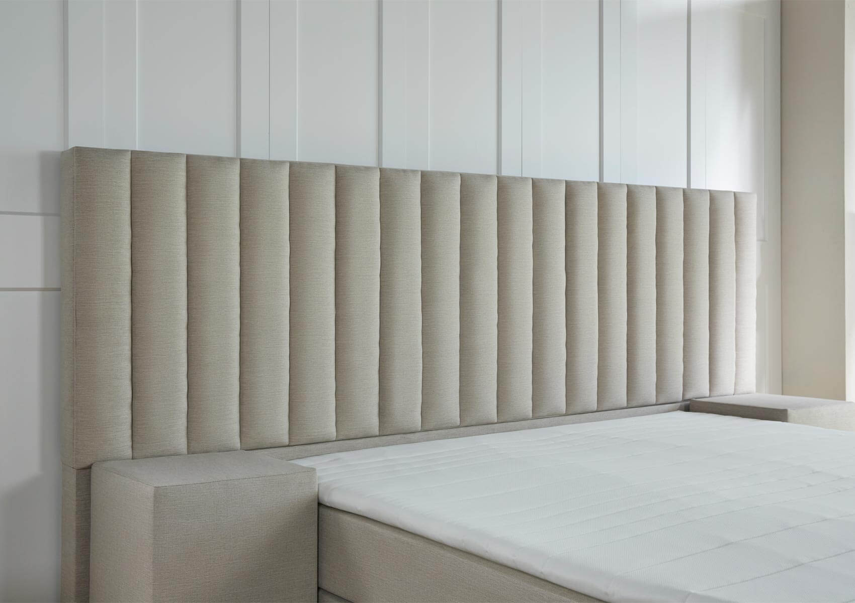 De premium boxspring Lyon heeft een XXL hoofdbord dat aan beide kanten 45 cm uitsteekt. Het hoofdbord is van hout en geeft het bed een sterke basis. In het hoofdbord zit schuim, zodat het heerlijk aanvoelt als je er tegen leunt!