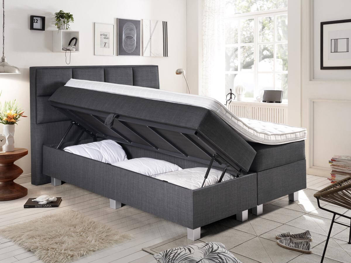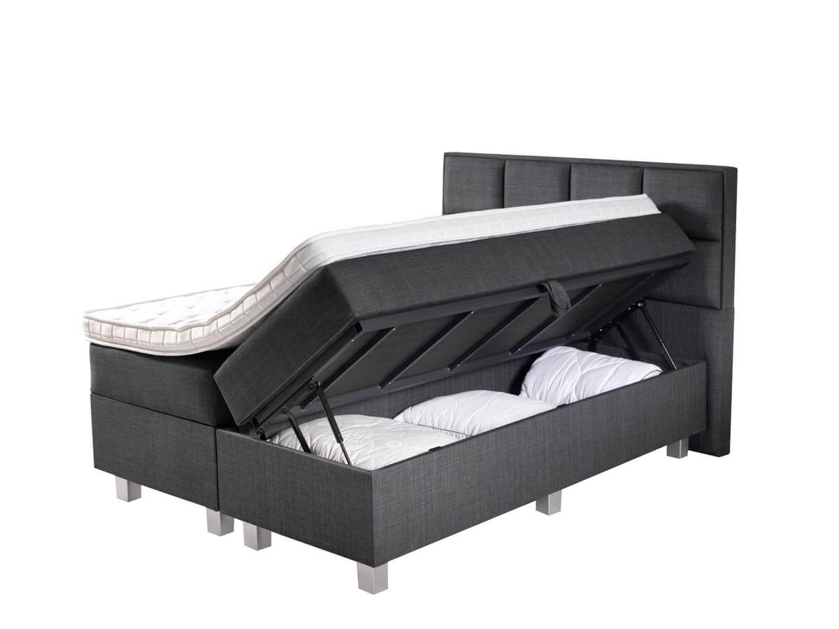 De opberg boxspring Grande Storage in antraciet heeft een opbergruimte die zich onder de gehele boxspring bevindt. De ruimte in de boxspring is ideaal om beddengoed zoals dekens op te bergen!