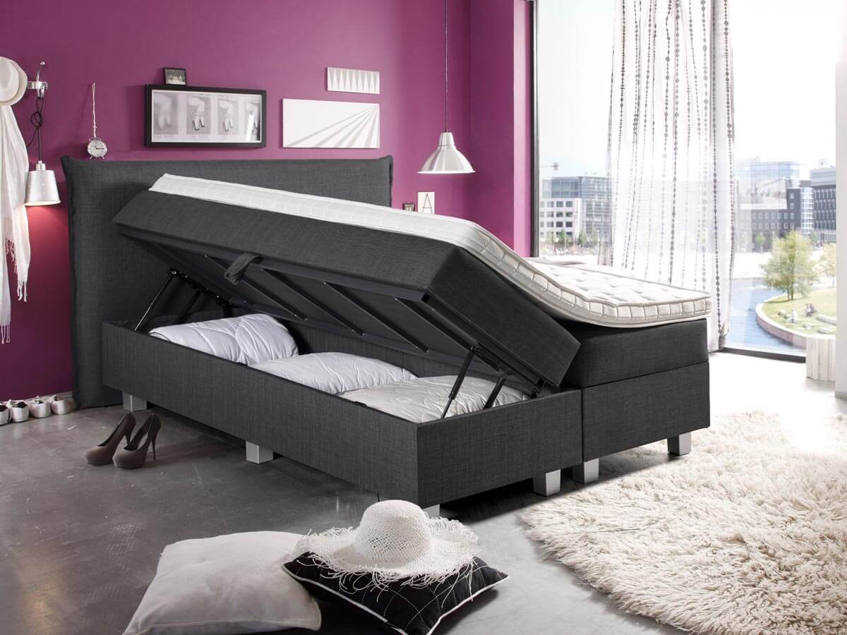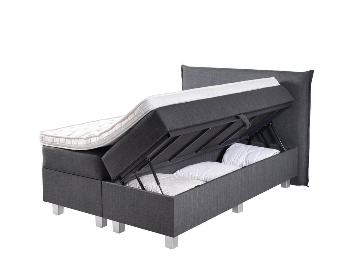 De opberg boxspring Plane Storage in antraciet heeft een opbergruimte die zich onder de gehele boxspring bevindt. De ruimte in de boxspring is ideaal om beddengoed zoals dekens op te bergen!