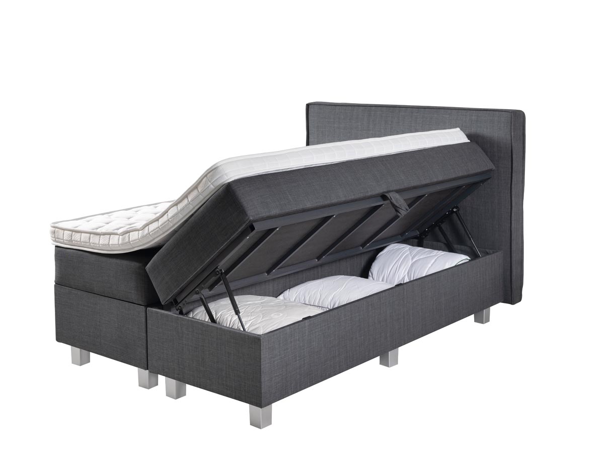 Een boxspring met opbergruimte is erg praktisch want het is eigenlijk een bed en kast in één. Deze opberg boxspring Slim Storage met extra opbergruimte is dan ook zeer gewild bij studenten en mensen met te weinig (opberg)ruimte thuis.