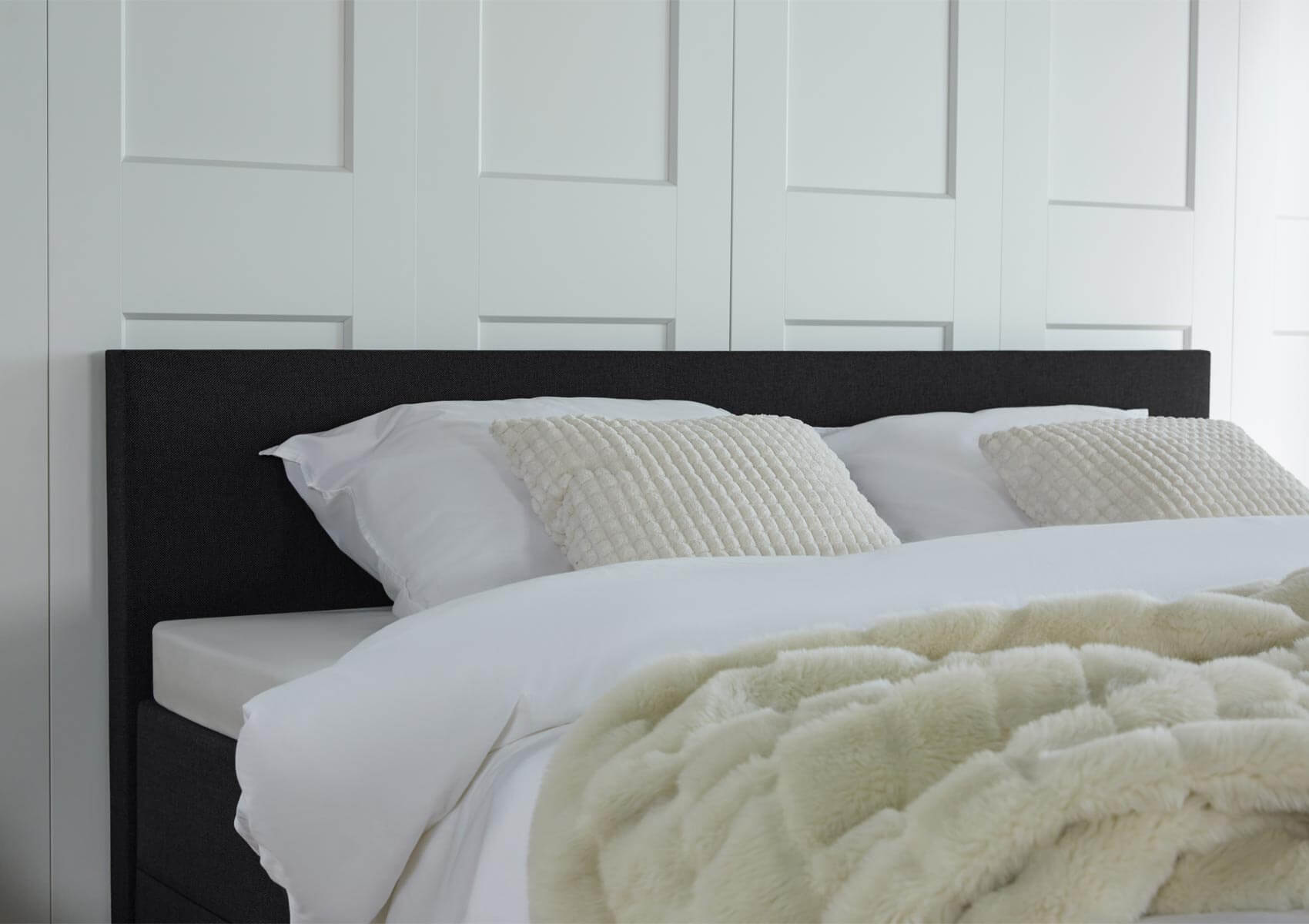 De opberg boxspring Valencia heeft een no-nonsense hoofdbord dat even breed is als het bed. Het geeft het bed een strakke, minimalistische uitstraling!
