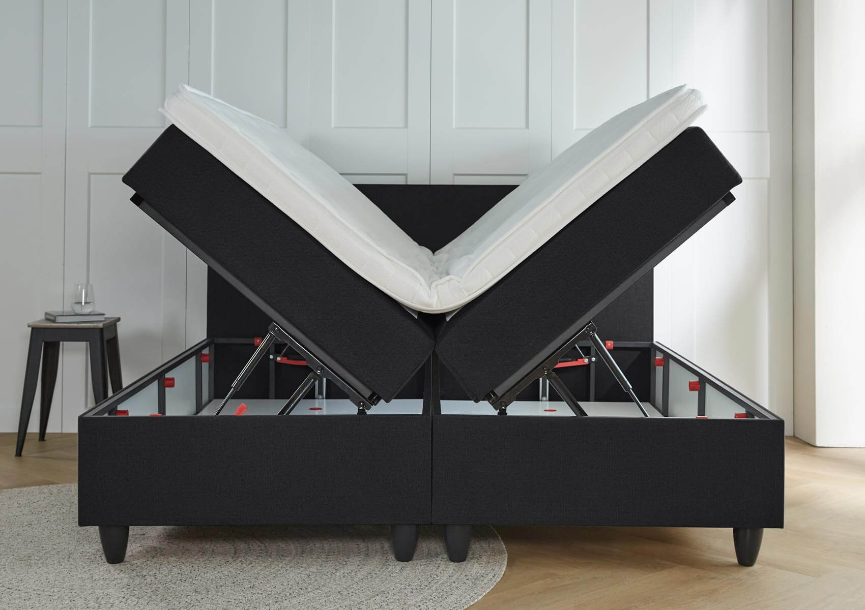 De opbergboxspring bestaat uit de opbergboxen, met daarop de heerlijk geveerde matrassen met 7-zone pocketveren en maar liefst 300 veren per m2. Voor het ultieme comfort!